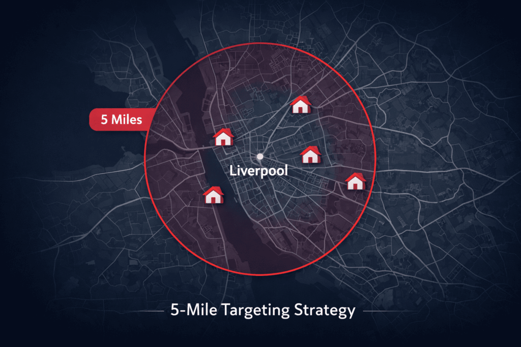 The campaign was split evenly between broad Liverpool targeting and tight 5-mile targeting for comparison.