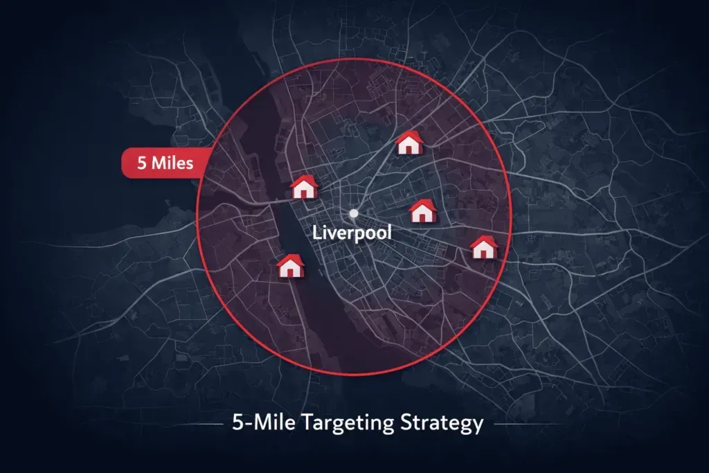 The campaign was split evenly between broad Liverpool targeting and tight 5-mile targeting for comparison.